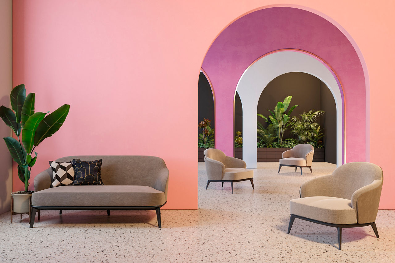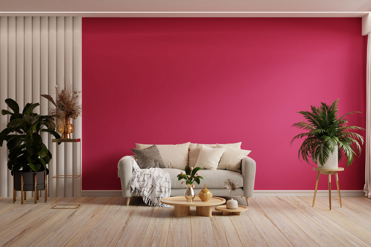 Use beige for larger surfaces like adjoining walls or floors, letting magenta act as the focal point. This combination with magenta colour works beautifully in family homes and shared spaces.