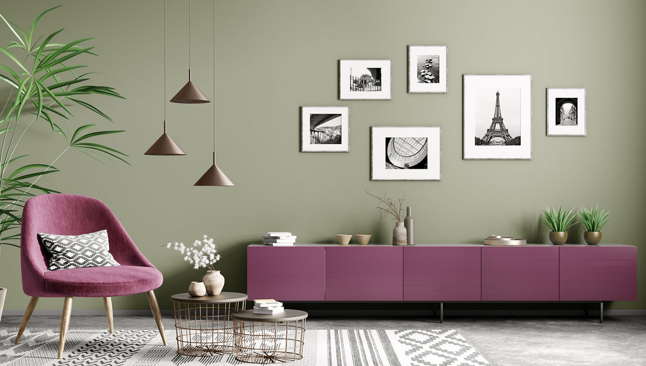 Our Recommendation: Try Dusky Magenta (PP 4054) for the feature wall and Steamed Rice (WW 0008) for the remaining walls to keep the space bright, clean, and visually open.