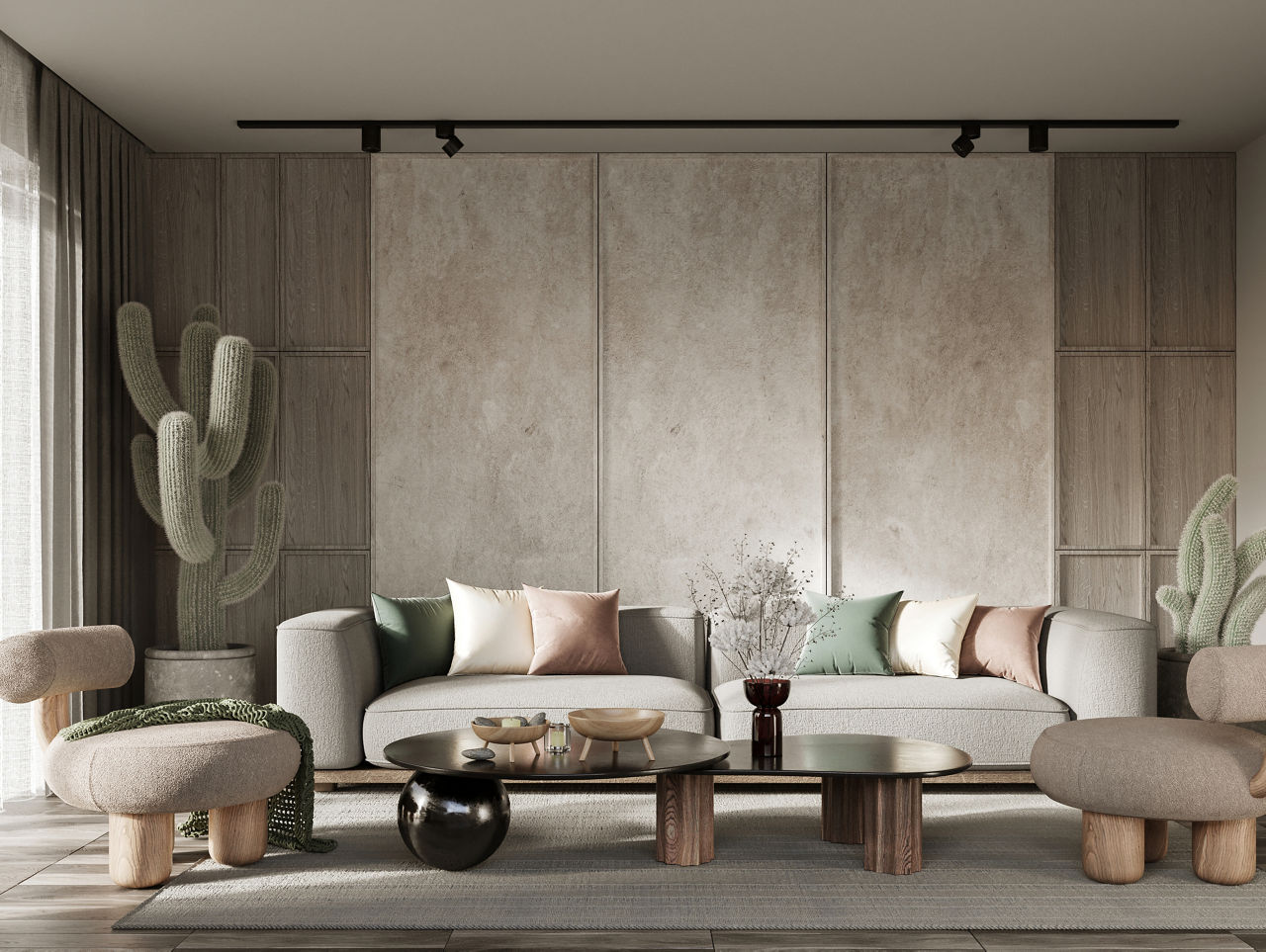 Soft beige and warm cream create a seamless, well-balanced look that blends easily with any décor. Beige introduces a grounded, natural feel that makes the space look inviting, while cream provides a clean and smooth contrast. This combination works well in living rooms or bedrooms, giving the space a relaxed and organised look.
