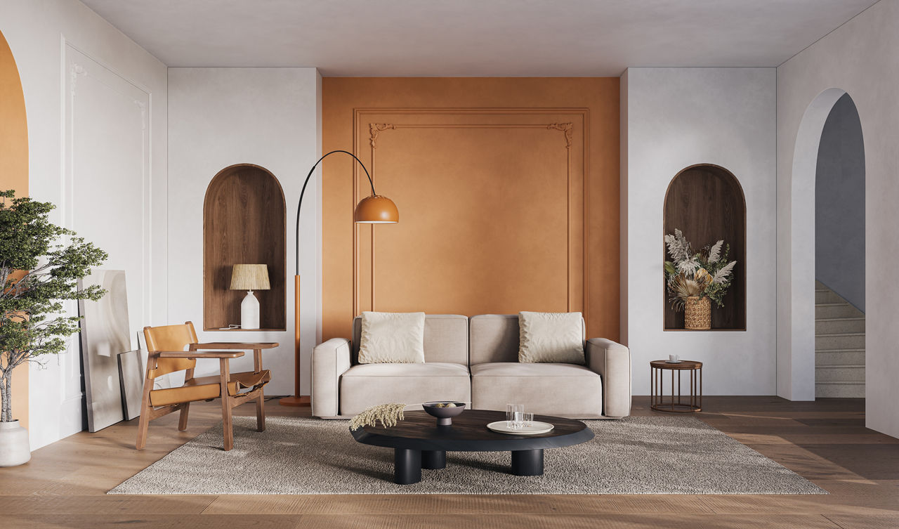 Every strong triadic palette begins with a primary shade. This dominant colour should cover the largest surfaces. It sets the emotional tone of the room and provides a stable foundation for the remaining hues.