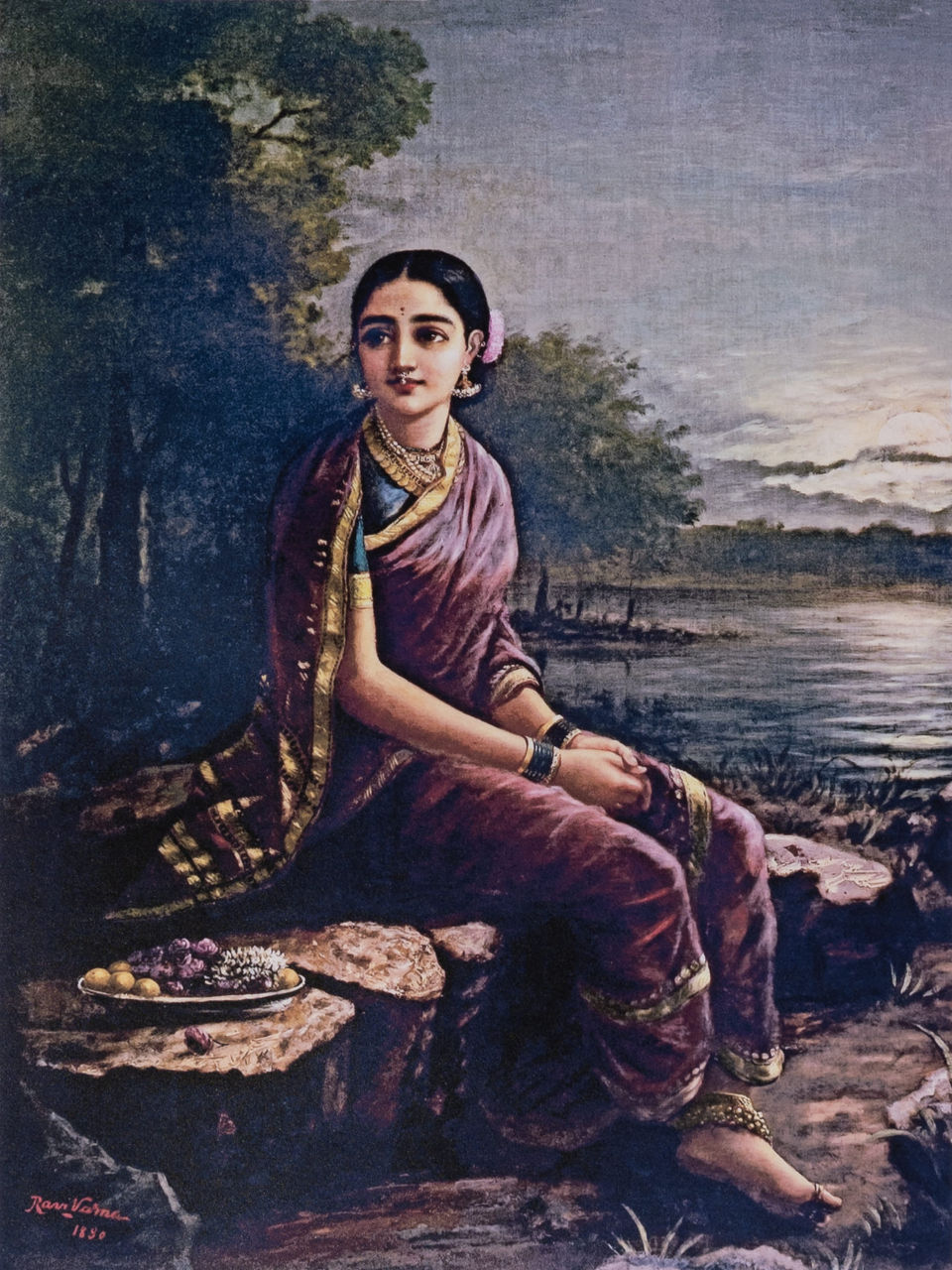 In the serene painting "Radha in the Moonlight" by Raja Ravi Varma, the luminous Goddess Radha sits at ease on the rocks near glimmering water, her presence a beacon of tranquillity. Yet, it's not just Radha's radiance that captivates but the depth of colour that Raja Ravi Varma masterfully employs. His palette, rich with deep, muted hues, tells stories beyond words. Ravi Varma's colours resonate with timeless elegance across his oeuvre, from mythological narratives to regal portraits. Inspired by his genius, we've crafted a a story that echoes his reverence for subtlety and sophistication. Bring a touch of history and artistry into your spaces, and let your walls become canvases and colours, storytellers.