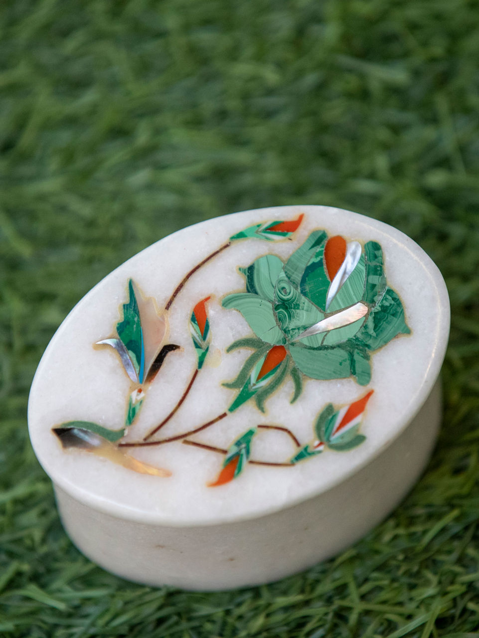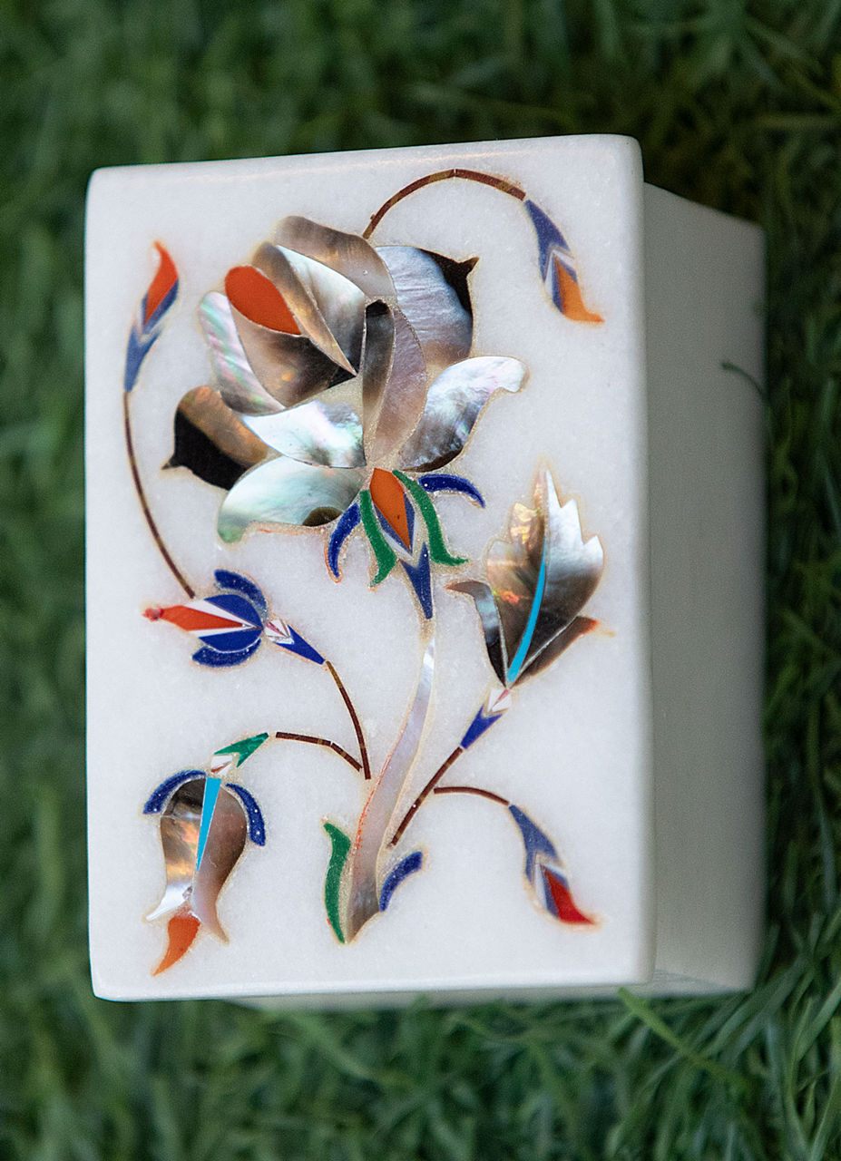 From the resplendent Taj Mahal in Agra to the serene courtyards of Rajasthan's palatial forts, marble inlay graces a myriad of architectural wonders in India. Employing muted and warm colours from semi-precious stones like malachite, carnelian, and jasper, each piece tells a story beyond its visual appeal. From the gentle warmth of ivory to the earthy richness of deep reds, the hues of marble inlay now lend a timeless charm to both traditional and modern interiors. This ancient craft, intricate and delicate, creates a palette of colours that have inspired this story. Offering a spectrum of warm colours, this collection captures not just the eye but also the craftsmanship behind this masterful art form.
